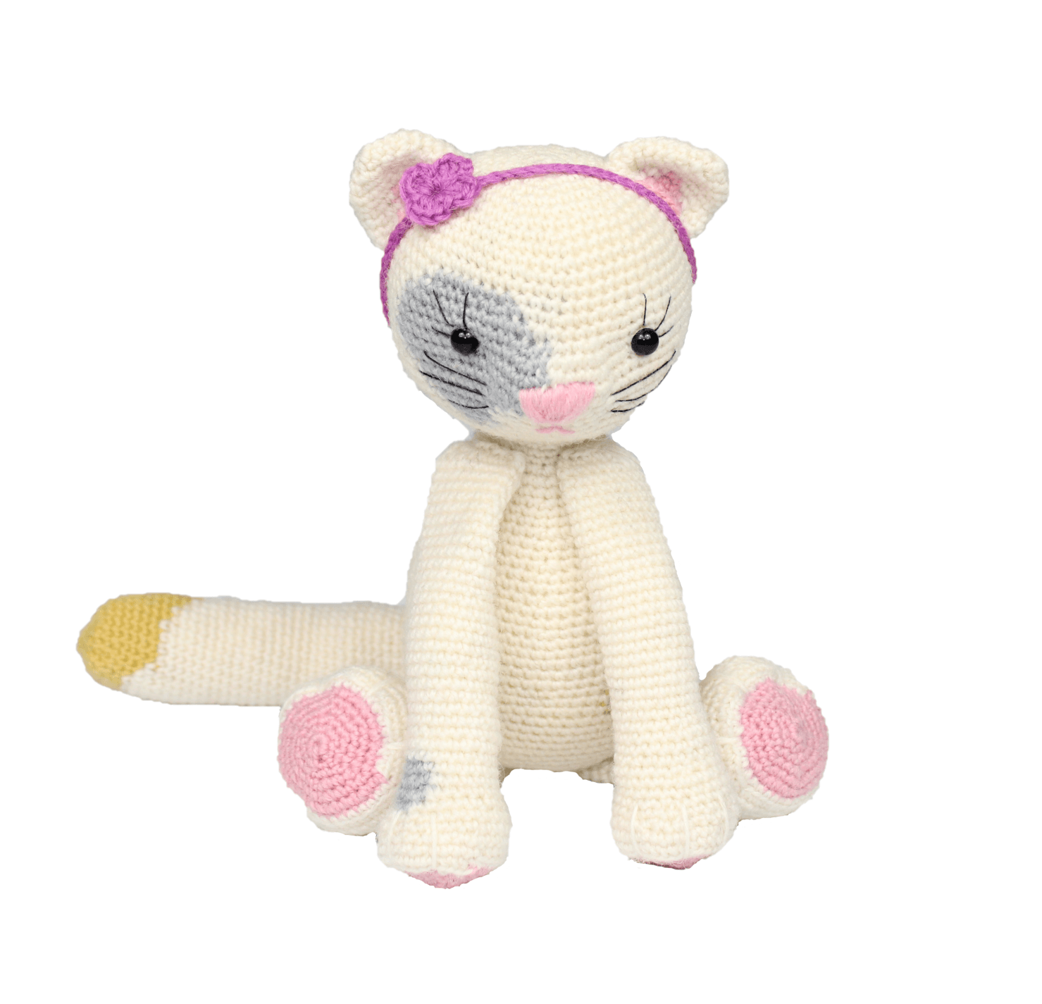 Dit wolvriendje is gemaakt van sokkenwol met haaknaald 2,5 en is zittend ongeveer 17 cm groot. Mocht je het leuk vinden om een ander garen te gebruiken, kan dat natuurlijk ook. Houd er rekening mee dat Rat (een stuk) groter wordt wanneer je (veel) dikker garen gebruikt.